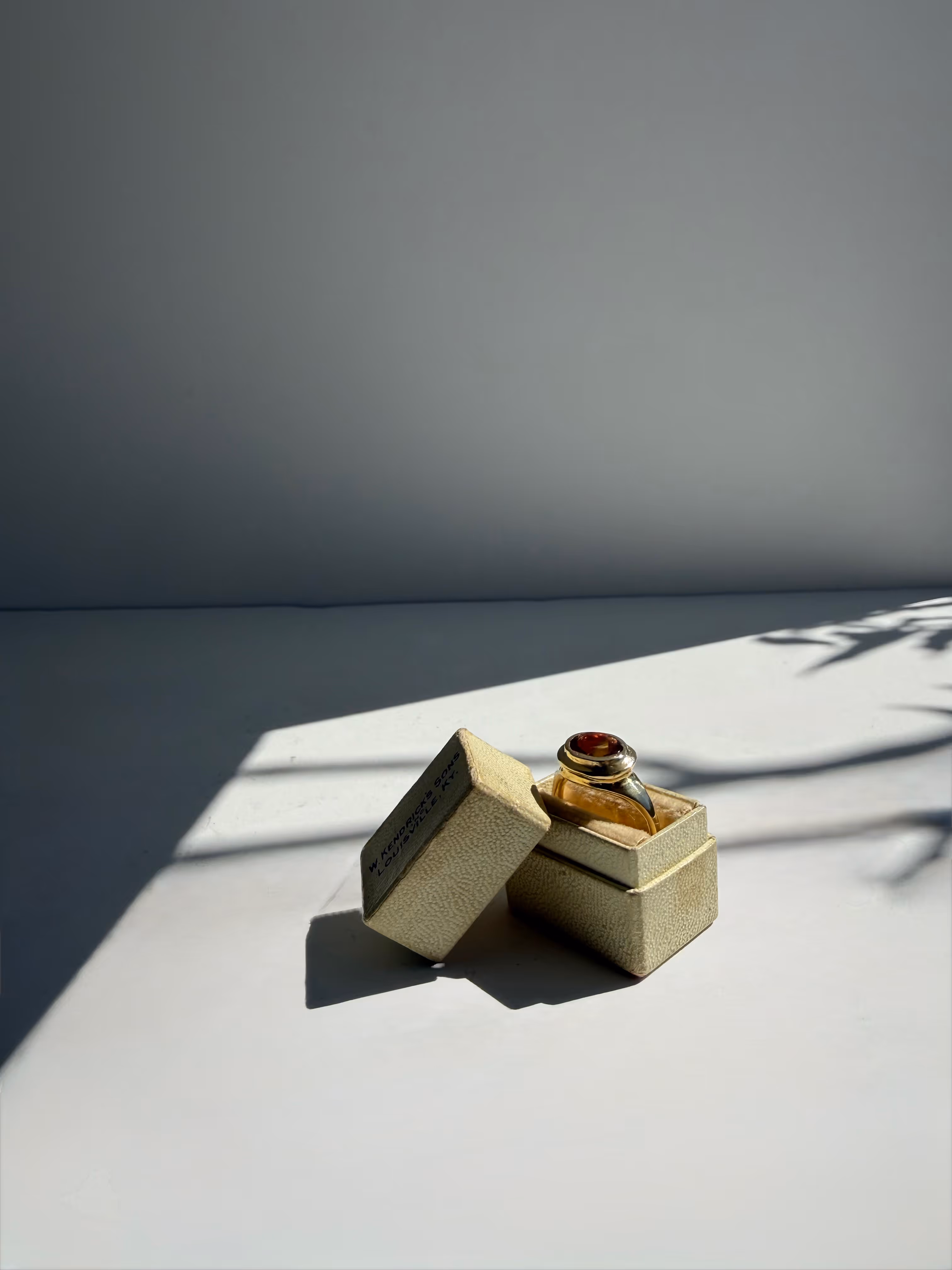 The stone shifts from deep red to soft peach depending on the light and angle — a natural phenomenon unique to this rare gem.