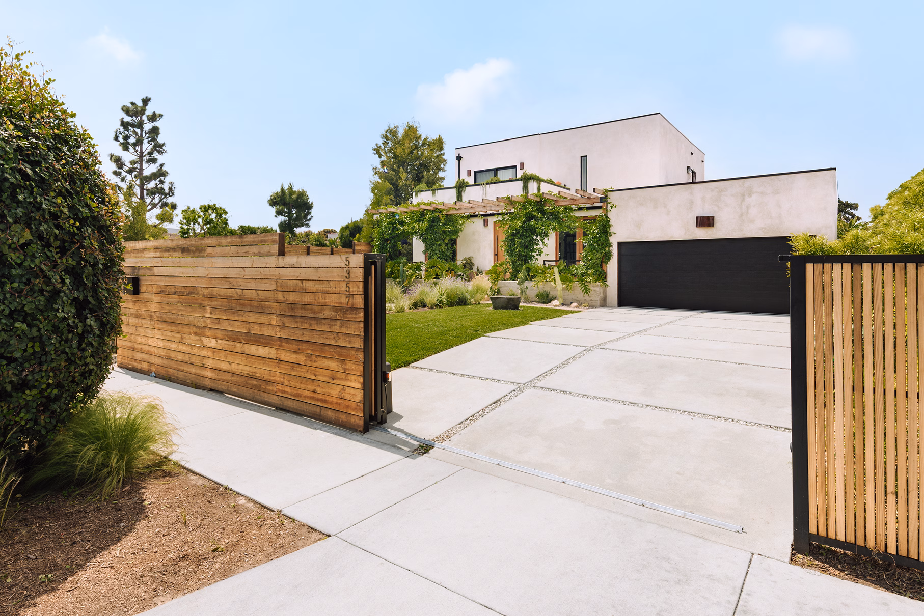 A ground-up residential project designed and built with a clear point of view: warm woods, plaster, and polished concrete carry through every room.